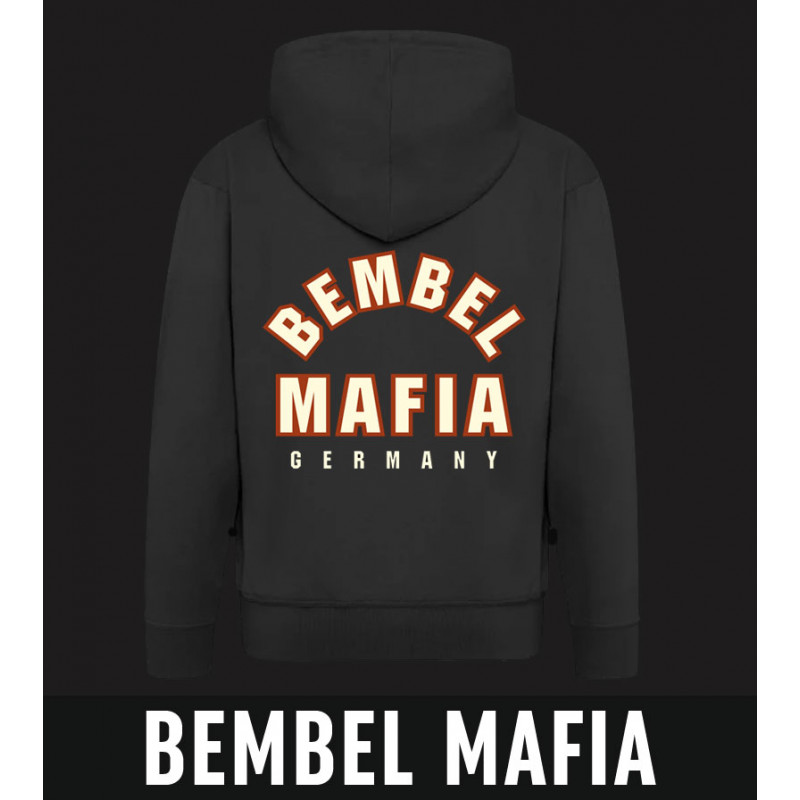 Schwarzes Bembel Mafia Kapuzensweat Pulli Hoodie mit 80er SCHAUMDRUCK.